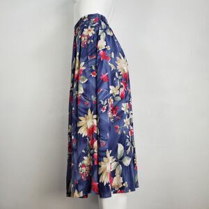 Vintage 80s Alfred Dunner blue floral midi skirt. High-waisted with partially elastic waistband and buttons down the front.