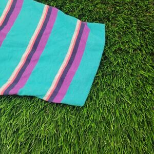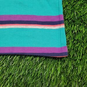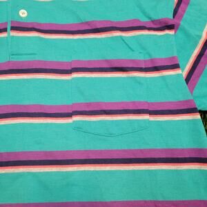Vintage 80s Andhurst Striped Polo Shirt Medium Made in USA Skater Vaporwave Teal Purple Drop Shoulder Chest Pocket 50/50 Cotton Poly Blend Oversized Boxy Fit Vibrant Bright Colors MOD