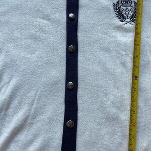 Vintage 80s blue/white with crest cardigan sweater #cardigan #preppy