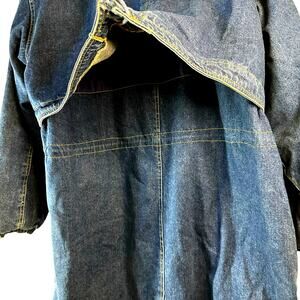 Vintage 80s Andy Johns Longline Denim Hooded Coat Jacket Utility Pockets Blue