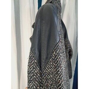 Vintage 80s Ann-Gee Wool Blend Coat XL Black Lined Tweed Leather Trim 11/12