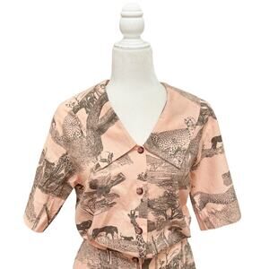 Vintage 80s Anya Blouse and Skirt Set Safari Pink Large
