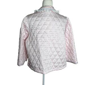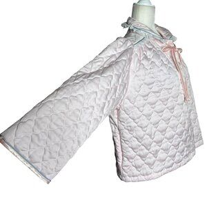 Vintage 80s Appel Quilted Bed Jacket Large Light Pink Lace Polyester Buttons