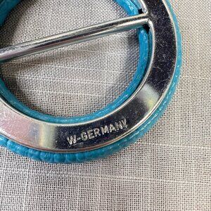 Vintage 80s Astor West Germany Teal Blue Round Belt/ Scarf Buckle