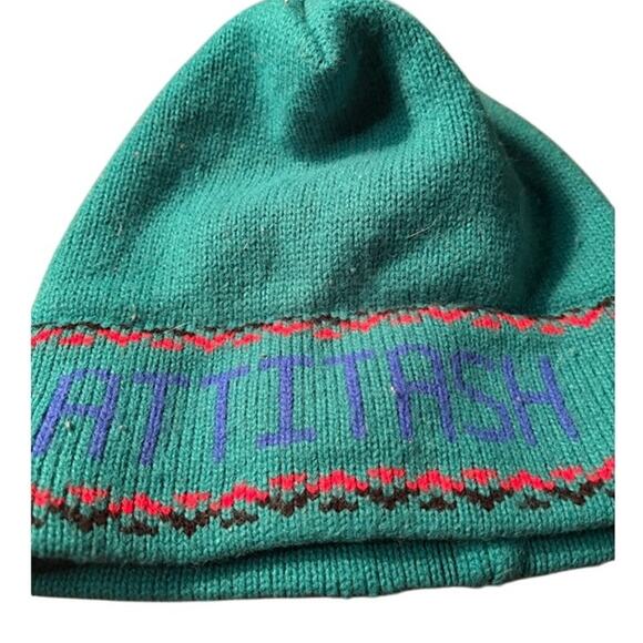 Vintage 80s Attitash Mountain Knit Ski Hat Winter Beanie Turquoise Blue Name Dropper Co. IN EUC great Vintage Ski Item. See pics