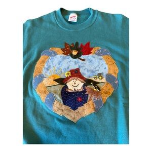 Vintage 80s Autumn Applique Sweatshirt Womens XL Scarecrow Pumpkin Granny Core