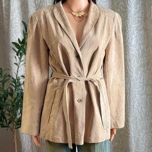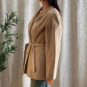 Description: beautiful vintage 80s belted tan suede blazer jacket by Avanti in US women’s size 14. ***Other clothing/accessories not included.
