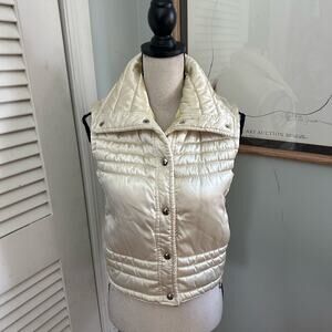 Vintage 80s BECONTA Womens Puffer Vest Cream Satin Outdoor Retro Snap Close