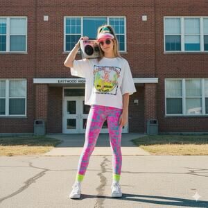 Vintage 80s BODY by GITANO Oasis Springs Spa Resort Neon Runner Crop Tee USA OS
