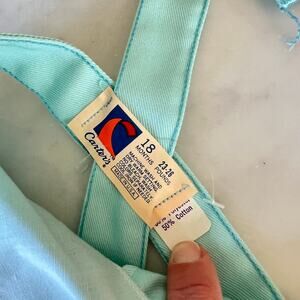 Vintage 80s baby girl butterfly appliqué ruffle sleeveless romper by Carter's. Marked a size 18 months, but please check measurements below as vintage runs smaller-- prob more of a 12 months. New with tags, though has a few tiny faint spots on the front that should wash out. Snap button closure at bottom and double buttoned straps. Elastic leg openings and back seam.