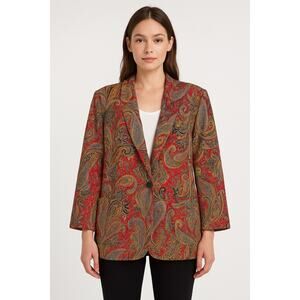 Vintage 80’s Baby O Paris Red Paisley Tapestry Blazer Coat Boho Chic medium