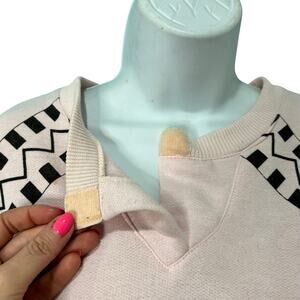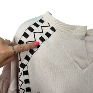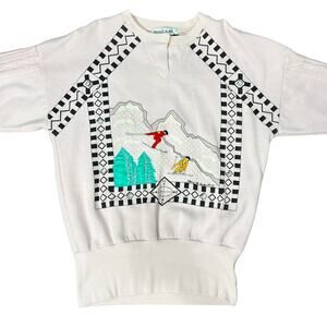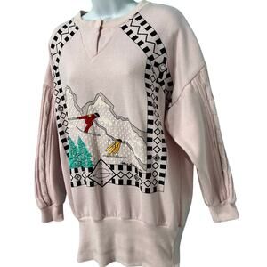 Vintage 80s Baby Pink Mixed Media Skiing Winter Sweatshirt Crew Neck Size L