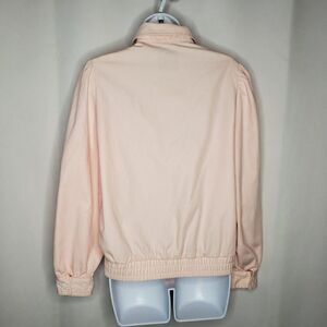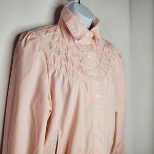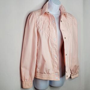 Vintage 80s Baby Pink Jacket Cotton Blend Sz S Snap Closure Gathered Shoulders Cuffs