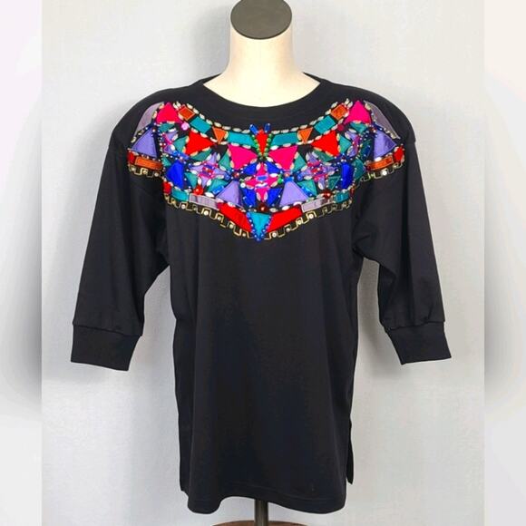 Vintage 80's Beaded Patchwork Pullover SZ L