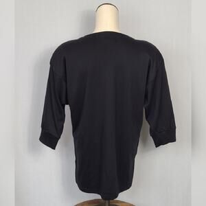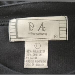 Beading and satin poly patchwork design on front. Missing a bead (pictured). Shoulder pads can be easily removed. Split seams at hemline for a relaxed fit. Deb Goldberg approved! All measurements are approximate and are taken lying flat and unstretched
