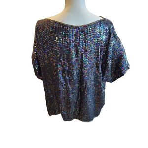 Vintage 80s Beaded Sequined Sequins Top Blouse Size 20 Batwing Sleeve Era Tour