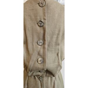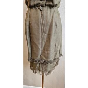 Vintage 80s Beau David Linen Blend Fringe Dress Women Sz 8 Olive Green