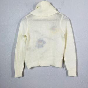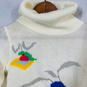 Vintage 80s Bee Wear Turtleneck Sweater Mid Mod Floral Long Sleeve Cream - S