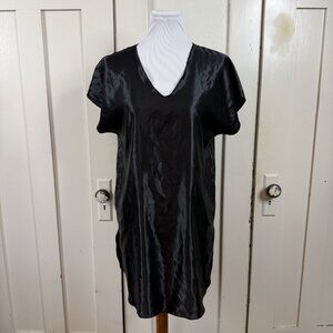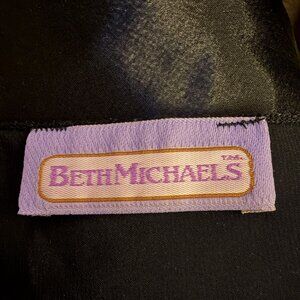 Vintage 80s Beth Michaels Black Satin Small S Mini Dress Union Made Goth