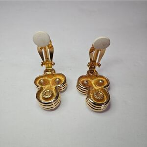 Vintage '80s Bezel Set Jewel Tone Multicolor Gold Tone Clip On Earrings