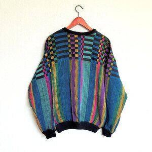 Vintage 80s Bianculli Neon Geometric Maximalist Women's Sweater Size L RARE