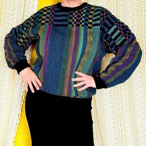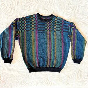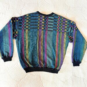 Vintage 80s Bianculli Neon Geometric Maximalist Women's Pullover Sweater Size L RARE