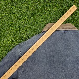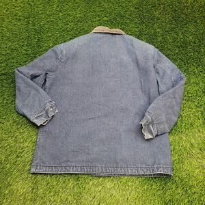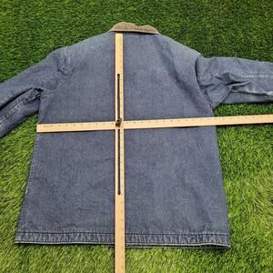 Vintage 80s Big Ben Denim Chore Jacket Large 24x30 Size 44 Blanket-Lined Corduroy Collar Blue USA