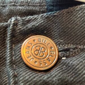 Classic vintage Bill Blass Jeanswear “Easy Fit” black denim jeans. Made of 100% cotton with a comfortable mid-rise and tapered leg cut, these jeans feature the signature BB logo hardware, original embossed faux-leather back patch (showing natural vintage wear), and authentic late 80s–early 90s design. Timeless, versatile, and perfect for collectors of vintage denim or anyone looking for a sleek pair of petite black jeans.