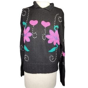 Vintage 80s Black Beaded Embellished Sweater Size Small