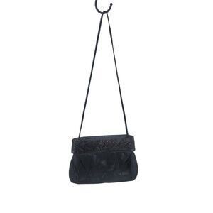 Vintage 80s Black Genuine Leather Snakeskin Embossed Crossbody Bag Formal Glam