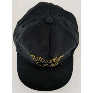 Vintage 80's Black Iowa Hawkeye's Snapback Rope Hat Screen Print Logo Trucker
