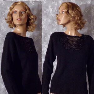 Vintage 80s Black Lace Sweater 1980s Silk Angora Pullover by Cristina Size S/M