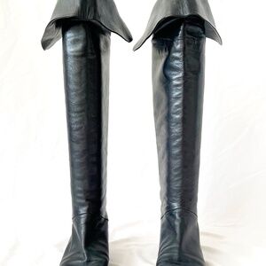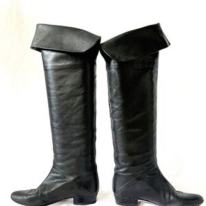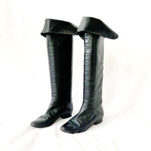 vintage 1980s knee high black leather boots eu size 37 / us size 6.5