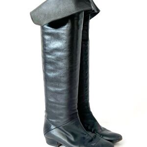 Vintage 80s Black Leather Knee High Boots - Italian Pirate Style Size 37 US Size