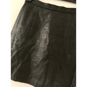 Vintage 80s Black Patterned Leather Mini Skirt Size 3/4