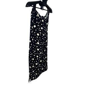 Vintage 80s Black Polka Dot Pencil Skirt Side Slits Pinup Rockabilly Midi Wiggle