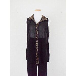 Sleeveless button-down long blouse by Jeanette Plus USA. Condition good, missing one button.