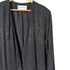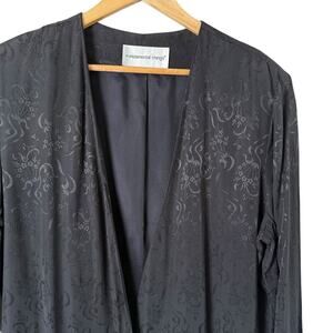 Vintage 80s Black Silk Floral Jacquard Long Oversized Blazer Jacket by Fundamental Things, Size 12