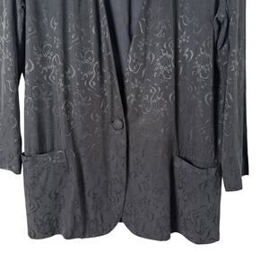Vintage 80s Black Silk Floral Jacquard Long Oversized Blazer Jacket, Size 12