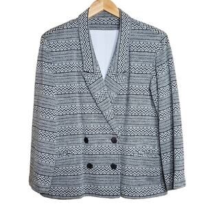 Women's Vintage 80s Blazer Double Breasted ZigZag Patterned Gray