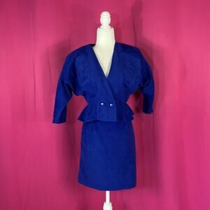 Vintage 80s Blondie and Me bluish purple peplum jacket and mini skirt set, size 7