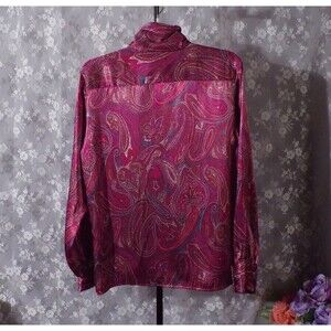 Vintage 80s Blouse 1980s Secretary Glam Paisley Office Retro Boho Size Medium