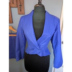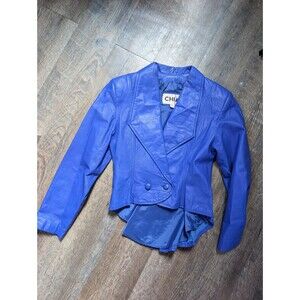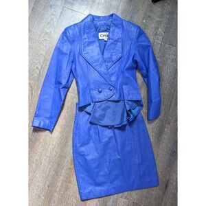 Vintage 80s Blue Leather Jacket & Skirt Womens Size Small