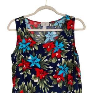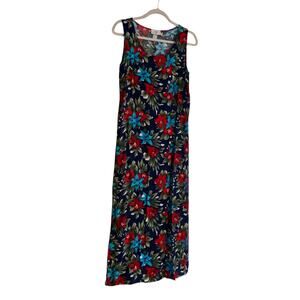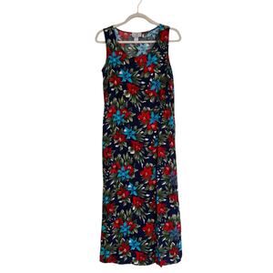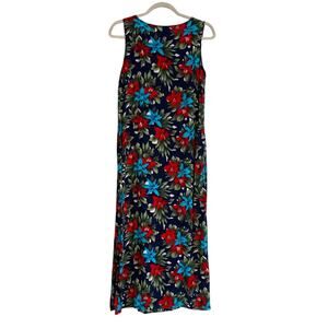 Vintage 80s Blue Red Hawaiian Floral Flowing Rayon Sheath Sundress Size Medium