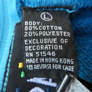 Vintage 80s Blue Sweatshirt 3D Velvet Purple Hearts Gold Embroidered Zipper Back. Hand Washable Cotton Poly Blend. Made in Hong Kong. Tagged Size L
