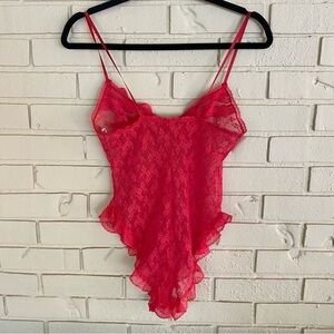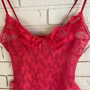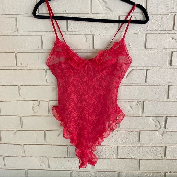 Vintage 80s Blush Lace Red Teddy Made In USA Size Small S Stretch Lingerie
