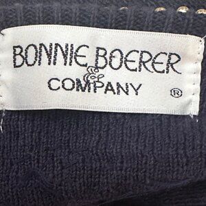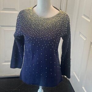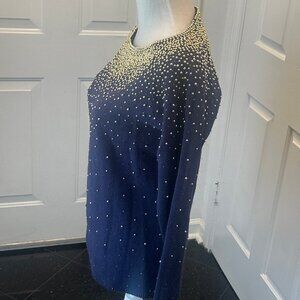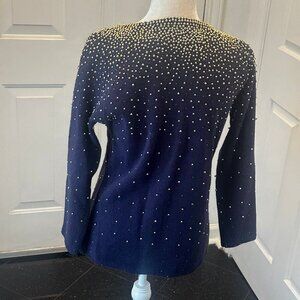 Vintage 80's Bonnie Boerer Embellished Navy Sweater with Gold Beads S