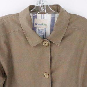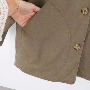 • Button Down Cotton Peacoat with striped lining, casual with roll cuffs with faux button belt on each cuff.