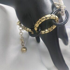 Vintage 80's Bracelet Rhinestones Oval Links Gold Black Cheetah Silver 7-9'' EUC