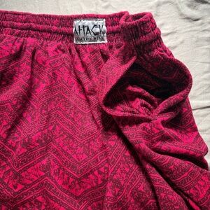 Bring the energy of the 90s to your wardrobe with these vintage bright pink joggers by Attack Reaction Wear. Featuring a bold black zigzag pattern, these pants are the definition of statement streetwear—perfect for festivals, lounging, or just living your best nostalgic life.